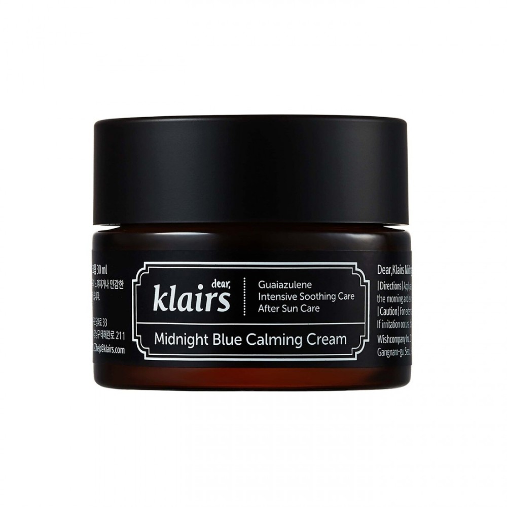 Dear Klairs Midnight Blue Calming Cream is a soothing skincare product designed to provide relief for sensitive and irritated skin. This cream, packaged in a convenient 30ml container, is formulated with a blend of calming ingredients that work synergistically to reduce redness and inflammation. The key component, Guaiazulene, derived from chamomile, imparts a distinctive blue hue to the cream while offering anti-inflammatory properties that help to soothe the skin. Additionally, the cream is enriched with various botanical extracts that nourish and hydrate, making it an ideal choice for those seeking to restore balance and comfort to their complexion.